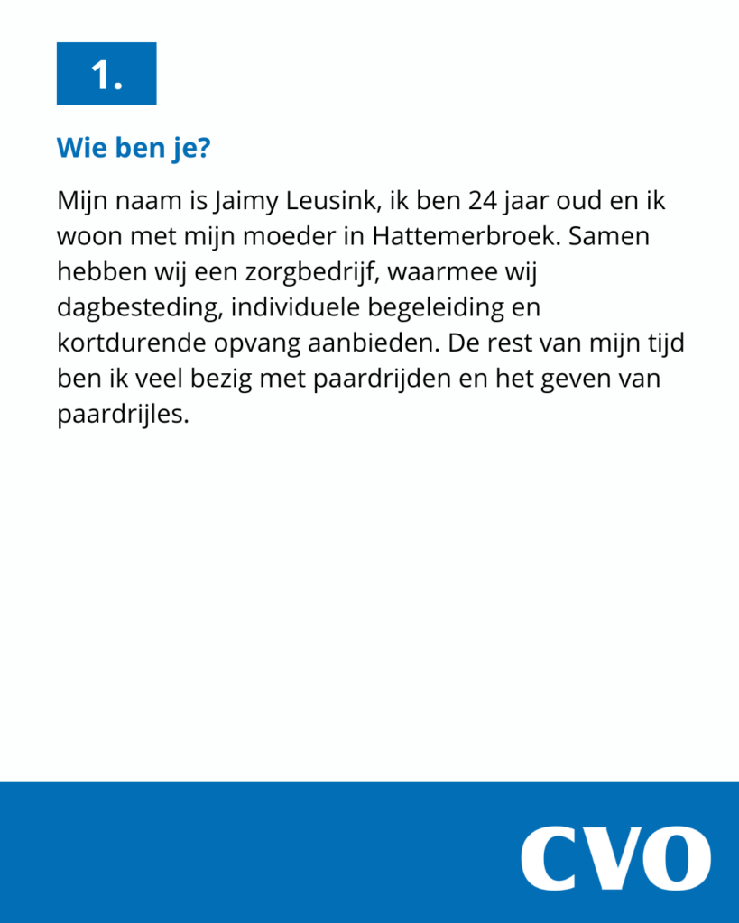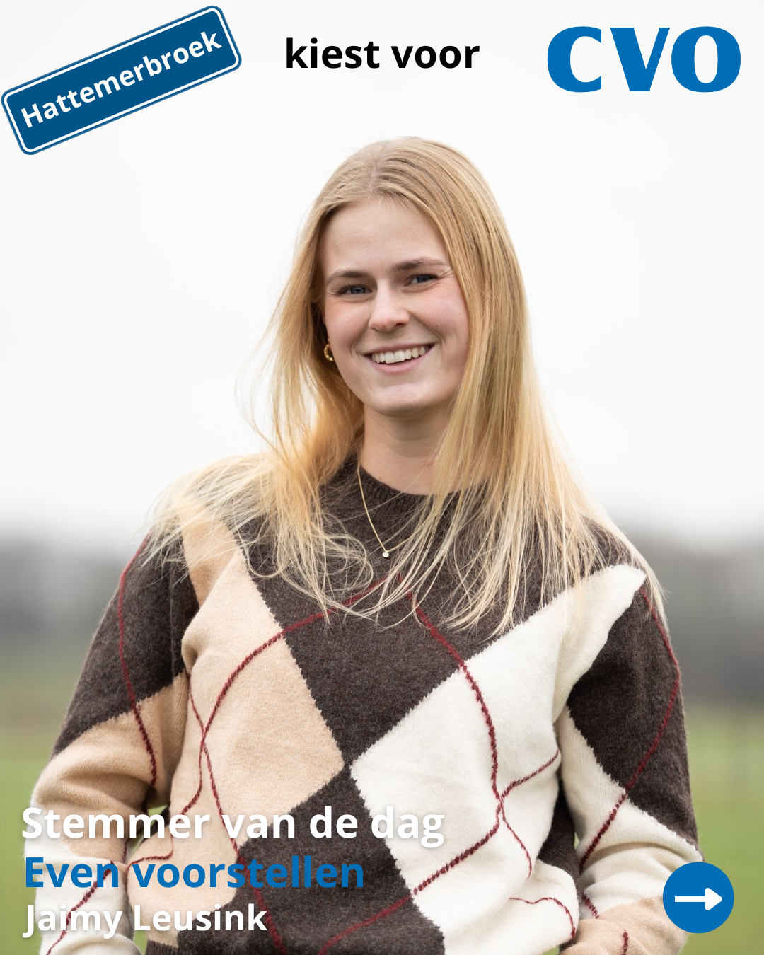 Kennen jullie Jaimy al? 24 jaar, woonachtig én actief in Hattemerbroek, en vol overtuiging verkiesbaar voor CVO!